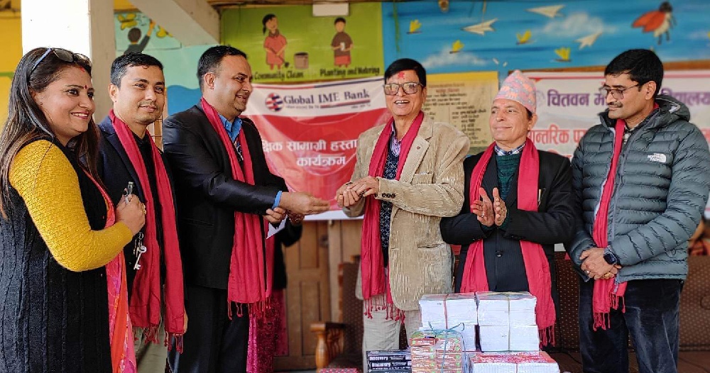 ग्लोबल आइएमई बैंकद्वारा विद्यार्थीहरुलाई शैक्षिक सामग्री सहयोग