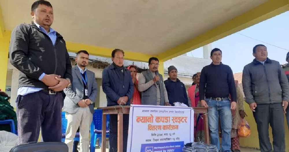 माछापुच्छ्रे बैंकद्वारा विद्यार्थीहरुलाई न्यानो कपडा र ब्ल्याङ्गकेट वितरण