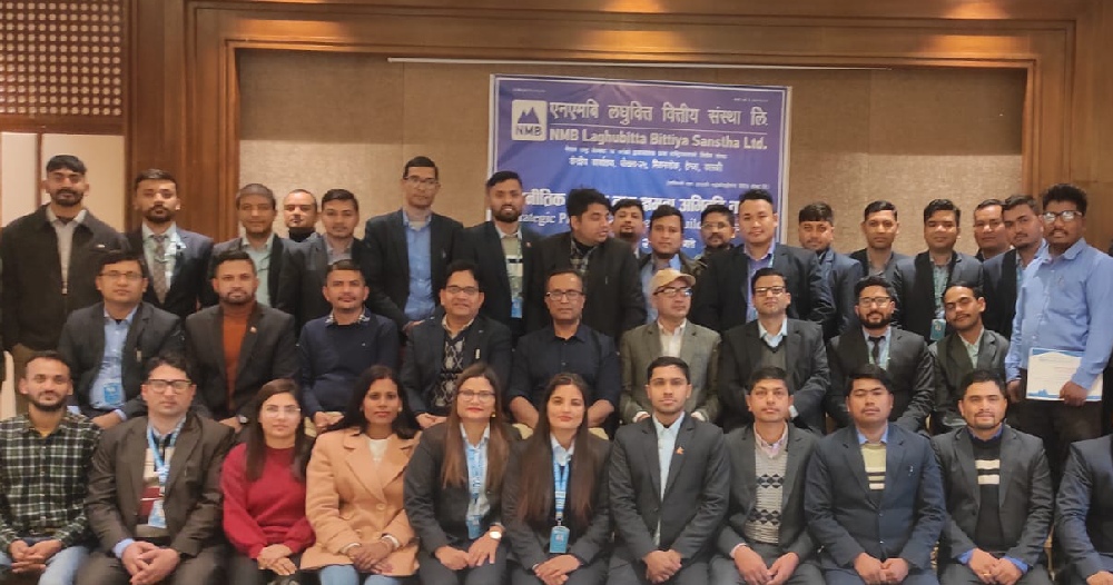 पोखरा । एनएमबी लघुबित्त वित्तीय संस्था लिमिटेडले सम्पत्ती शुद्घकरण निवारण लगायतको कर्मचारी क्षमता अभिबृद्घि तालिम रणनीतिक योजना तर्जुमा गर्न तीन दिवसीय तालिम कार्यक्रम हालै पोखरामा सम्पत्र गरेको छ ।
