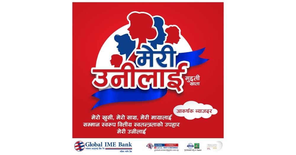 काठमाडौं, माघ २५ ग्लोबल आइएमई बैंकले नयाँ विशेषताका साथ ‘मेरी उनीलाई’ मुद्दती खाता योजना ल्याएको छ । हाल कायम ‘मेरी उनीलाई’ मुद्धती खातालाई परिमार्जन गरी यो योजना संचालनमा ल्याइएको हो ।