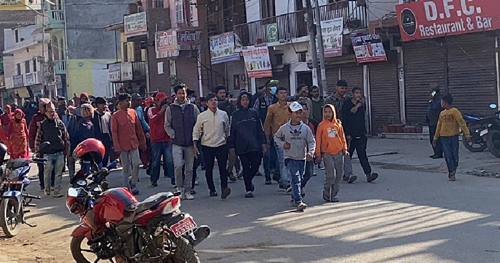 आन्दोलनकारीले वीरेन्द्रनगरका मुख्य चोकहरू यरिचोक, मंगलगढी चोक, एयरपोर्ट चोक र बसपार्कमा टायर बालेर सडकअवरुद्ध गरेका छन् ।