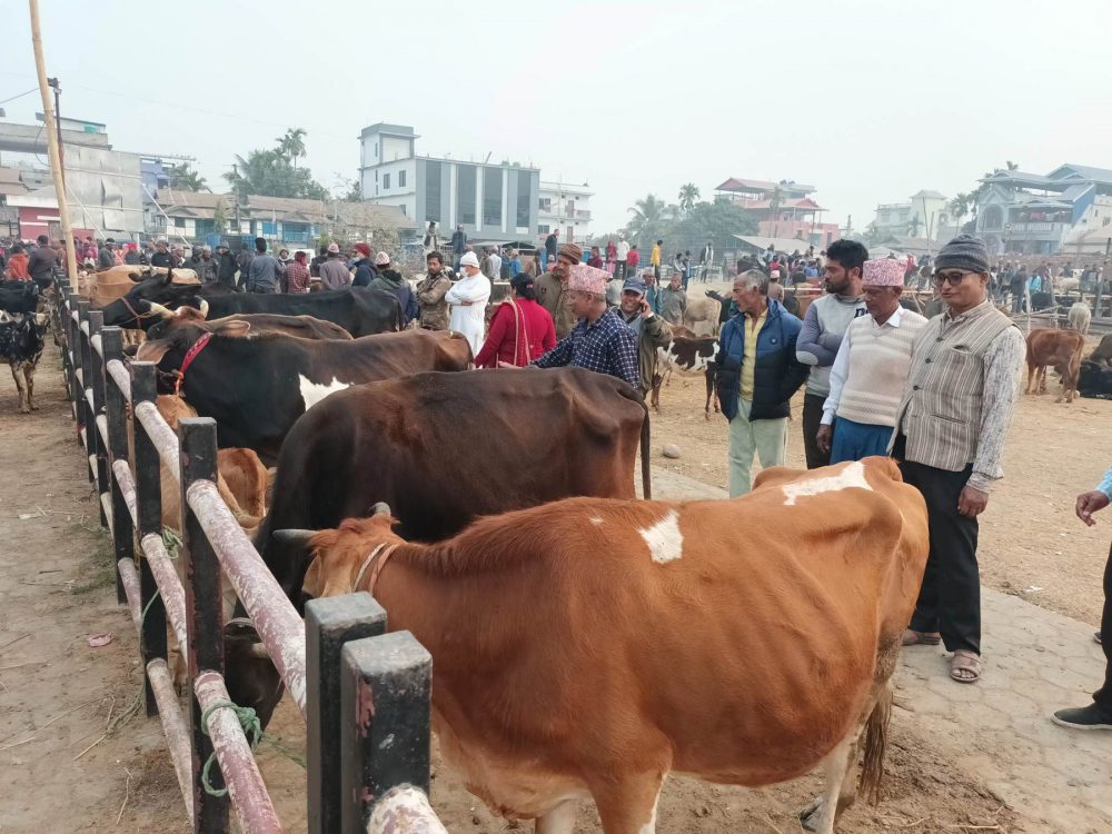 दमकमा साताको बुधबार लाग्दैआएको पूर्वकै पुरानो र ठुलो मानिएको पशुहाट बजारमा विक्रीका लागि राखिएका पशुचौपायाहरु । तस्बिर : यज्ञराज आङदेम्बे