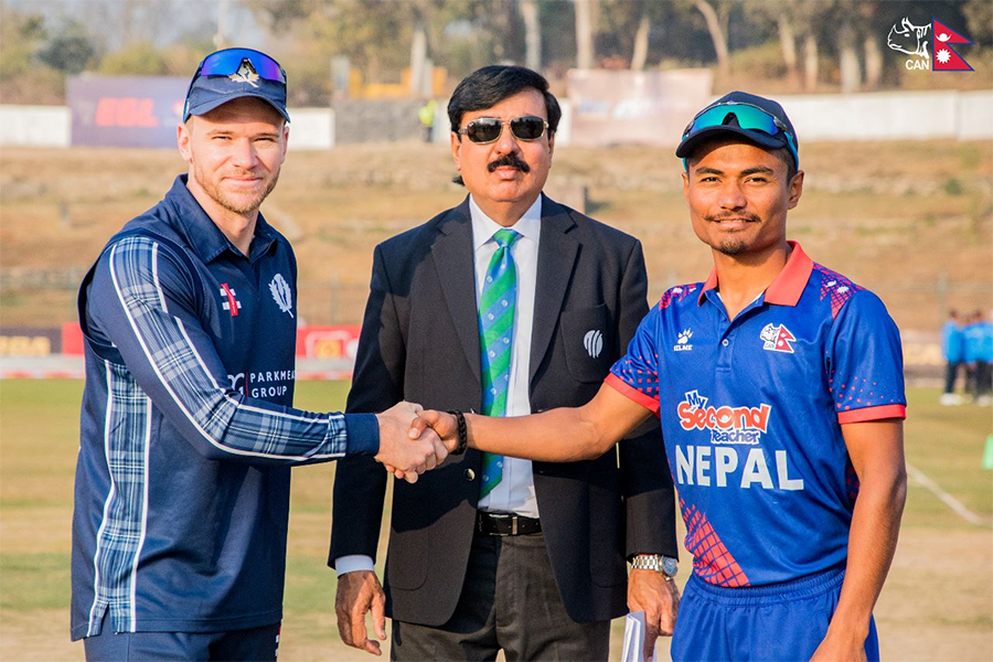 कीर्तिपुरस्थित त्रिवि क्रिकेट मैदानमा नेपालका कप्तान रोहित पौडेलले टस जितेर स्कटल्याण्डलाई ब्याटिङको निम्तो दिएका हुन् ।