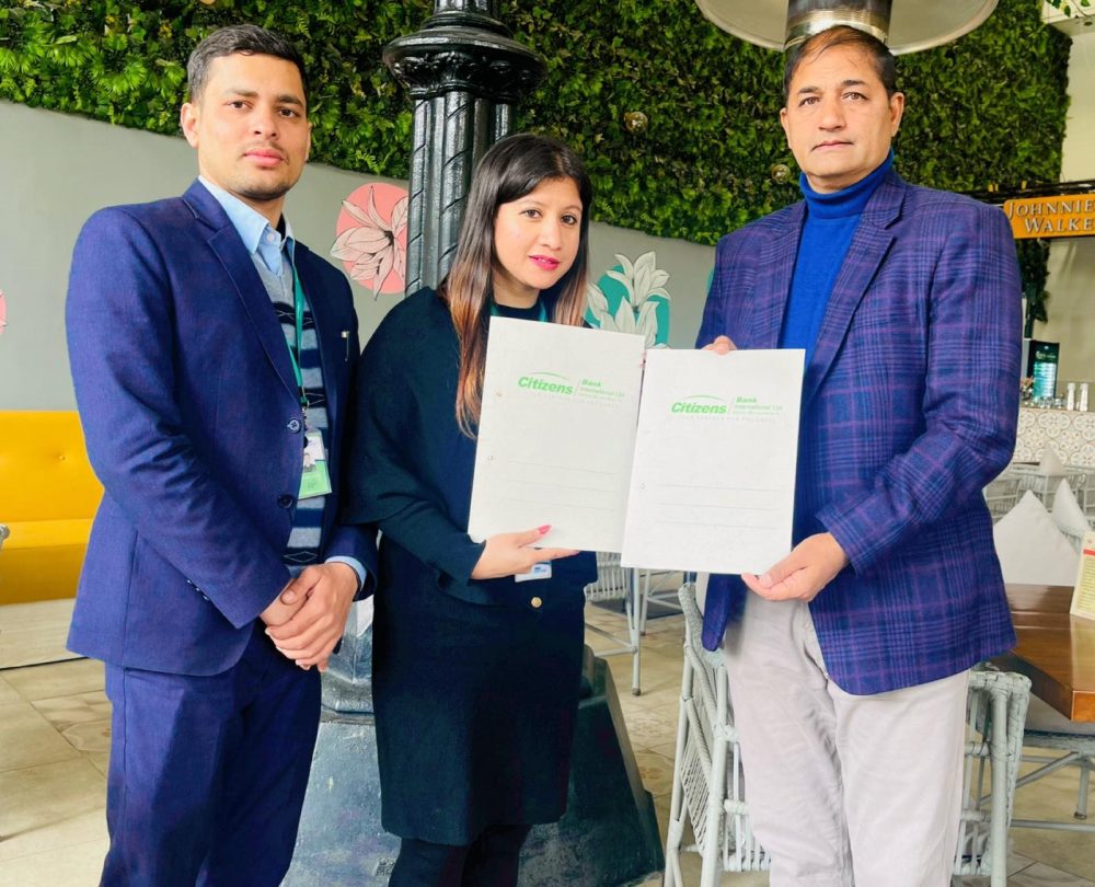 काठमाडौं । सिटिजन्स बैंक इन्टरनेसनल लिमिटेड र दरबारमार्ग स्थित ओरिएन्ट क्याफे बीच सिटिजन्स बैंकका कार्डबाहक ग्राहकहरूलाई विशेष छुट दिने समझदारीपत्रमा हस्ताक्षर भएको छ । यो समझदारीपत्रमा हस्ताक्षर पश्चात् सिटिजन्स बैंकका कार्डबाहकहरुले ओरिएन्ट क्याफेमा १५ प्रतिशतसम्मको आकर्षक छुट पाउनेछन् ।