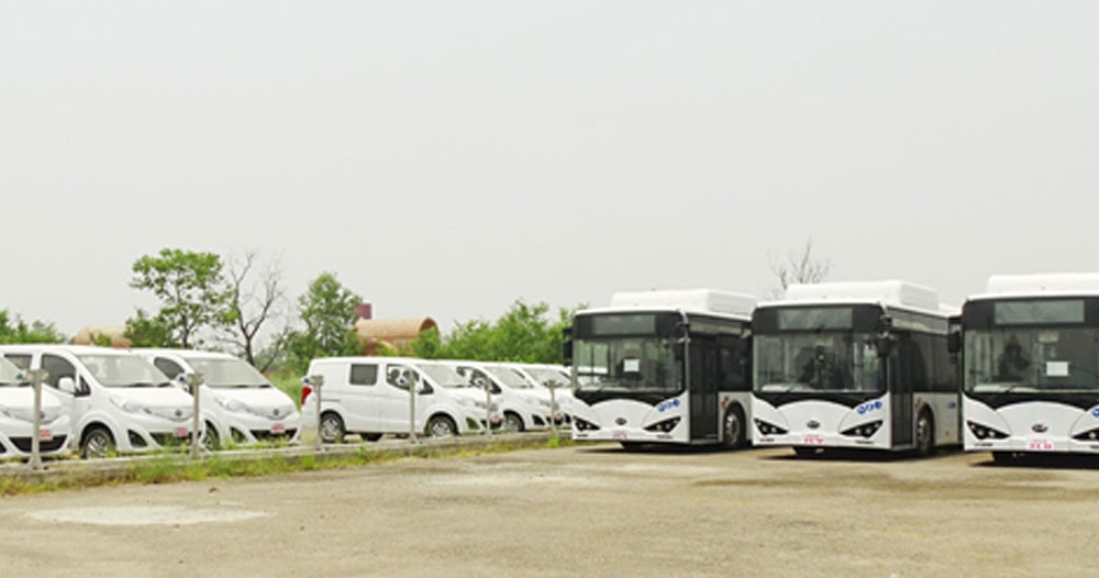 लुम्बिनीलाई प्रदूषणमुक्त बनाउन विसं २०७७ मङ्सिर ९ गते यी विद्युतीय बस र ट्याक्सी लुम्बिनी ल्याइएको थियो । तर, आवश्यक कानुनी प्रक्रियामा ढिलाई र सञ्चालनको नमूना तयार नहुँदा दुई वर्षभन्दा बढी समयदेखि खुल्ला आकाशमुनि थन्किएका छन् ।
