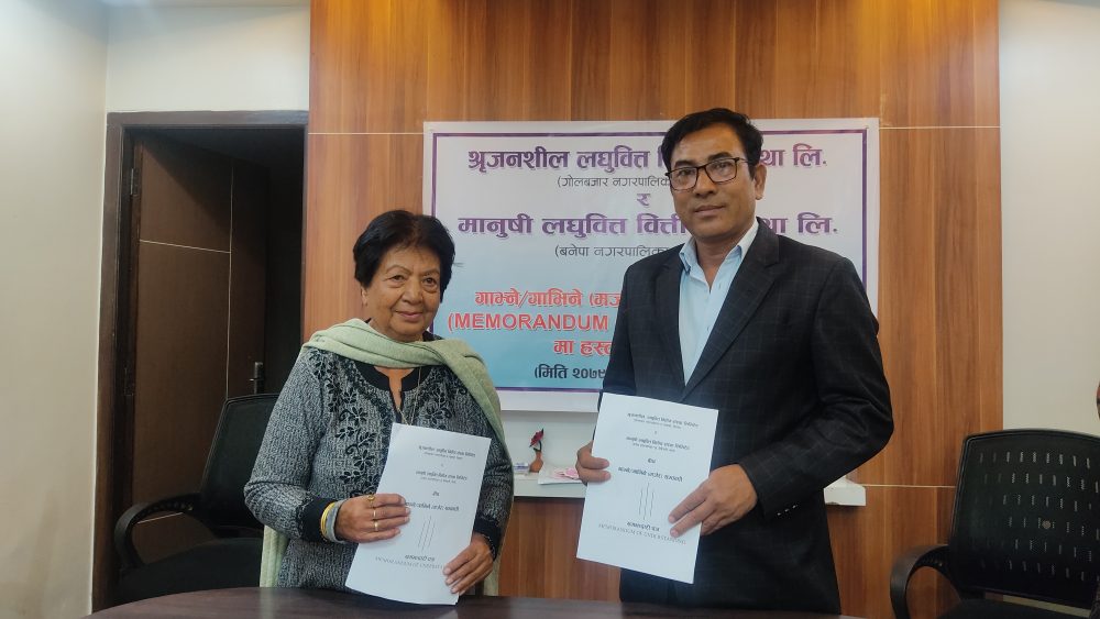 मानुषी लघुवित्त र श्रृजनशील लघुवित्त बीच मर्जर सम्बन्धी सम्झौता