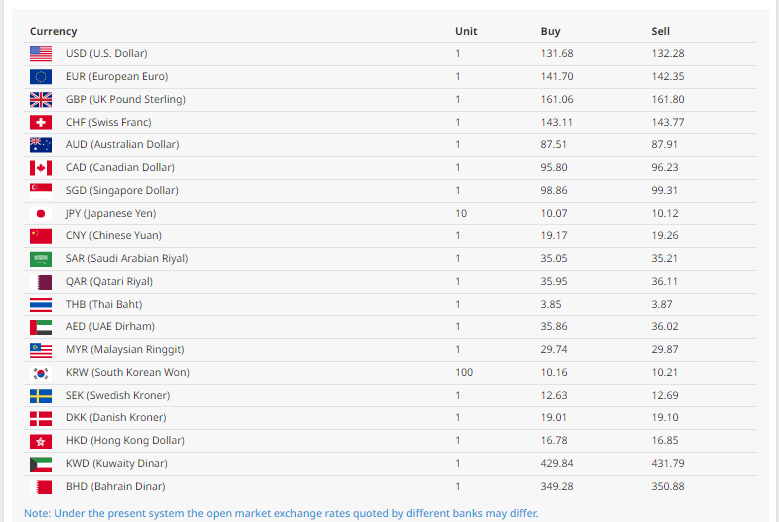 काठमाडौं । नेपाल राष्ट्र बैंकले आज (आइतबार) का लागि विदेशी मुद्राको विनिमयदर तोकेको छ । नेपाल राष्ट्र बैंककाअनुसार विदेशी मुद्राको विनिमयदर अमेरिकी एक डलरको खरिददर १३१ रुपैयाँ ६८ पैसा र बिक्रीदर १३२ रुपैयाँ २८ पैसा रहेको छ ।