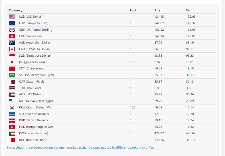 काठमाडौं । नेपाल राष्ट्र बैंकले आज (बिहीबार) का लागि विदेशी मुद्राको विनिमयदर तोकेको छ । नेपाल राष्ट्र बैंककाअनुसार विदेशी मुद्राको विनिमयदर अमेरिकी एक डलरको खरिददर १३१ रुपैयाँ ४५ पैसा र बिक्रीदर १३२ रुपैयाँ ०५ पैसा रहेको छ ।