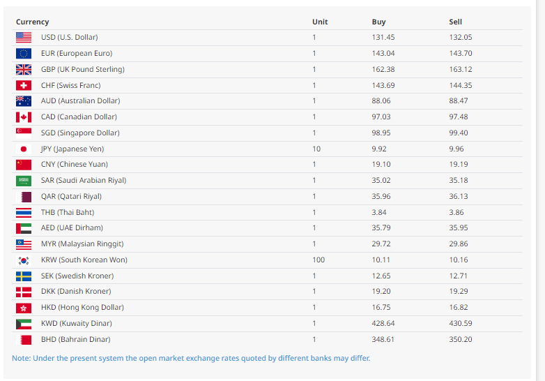 त्यस्तै, युरो एकको खरिददर १४३ रुपैयाँ ०४ पैसा र बिक्रीदर १४३ रुपैयाँ ७० पैसा रहेको बैंकले जनाएको छ । त्यस्तै, बेलायती पाउन्ड एकको खरिददर १६२ रुपैयाँ ३८ पैसा र बिक्रीदर १६२ रुपैयाँ १२ पैसा रहेको छ भने, कतारी रियाल एकको खरिददर ३५ रुपैयाँ ९६ पैसा र बिक्रीदर ३६ रुपैयाँ १३ पैसा रहेको राष्ट्र बैंकले जनाएको छ ।