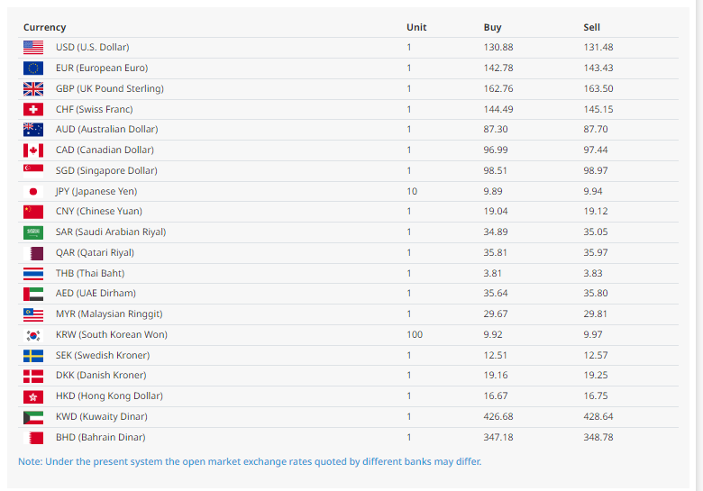 त्यस्तै, युरो एकको खरिददर १४२ रुपैयाँ ७८ पैसा र बिक्रीदर १४३ रुपैयाँ ४३ पैसा रहेको बैंकले जनाएको छ । त्यस्तै, बेलायती पाउन्ड एकको खरिददर १६२ रुपैयाँ ७६ पैसा र बिक्रीदर १६३ रुपैयाँ ५० पैसा रहेको छ भने, कतारी रियाल एकको खरिददर ३५ रुपैयाँ ८१ पैसा र बिक्रीदर ३५ रुपैयाँ ९७ पैसा रहेको राष्ट्र बैंकले जनाएको छ ।