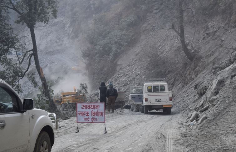 निर्माण कम्पनीका प्रतिनिधि नारायण जिसीले सडकमा कालोपत्रका लागि बेस बिछ्याएर सम्याउने र लोडरले पेल्ने काम सकिएको बताए। ‘वि.स. २०७६ मा कोरोना महामारी सुरु भएपछि रोकिएको सडक निर्माणलाई २०७७ साल असारको बाढीपहिराले क्षति पुर्यायो,’ उनले भने, ‘पहिराले क्षति गरेपछि गर्नुपर्ने अतिरिक्त कामको भेरिएसन अर्डर (भिओ) स्वीकृत भएपछि यसपालि कालोपत्र गर्ने कामलाई पूर्ण दिन लागिएको हो ।’ निर्माण नसकिँदै पहिलो चरणमा भएको कालोपत्र उप्किएर खाल्डाखुल्डी परेको, पर्खाल भत्किएको र नाली पुरिएको थियो ।