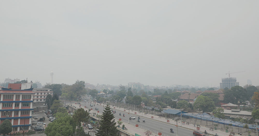 काठमाडौं । सङ्घीय राजधानी काठमाडौंको आकाश पछिल्लो एक सातादेखि धुलोयुक्त बाक्लो तुवाँलोले ढाकेको छ । मौसममा आएको फेरबदलले काठमाडौंको अधिकतम तापक्रम वृद्धि भई ३३ डिग्री हाराहारी पुगेको छ । मौसम बदलीसँगै अधिकतम तापक्रम निरन्तर बढिरहेकाले काठमाडौंमा निकै गर्मी महसुस गरिएको छ ।