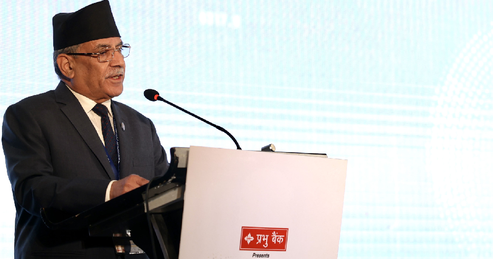 ‘आन्तरिक उत्पादन न्यून भएकाले ठूलो मात्रामा वस्तु आयातका कारण व्यापारघाटा चुनौतीकै रूपमा रहेको छ । अर्कोतर्फ मुलुकभित्रै पर्याप्त रोजगारी सिर्जना हुन नसक्दा युवा पलायन बढ्दो छ’, प्रधानमन्त्री दाहालले भने ।