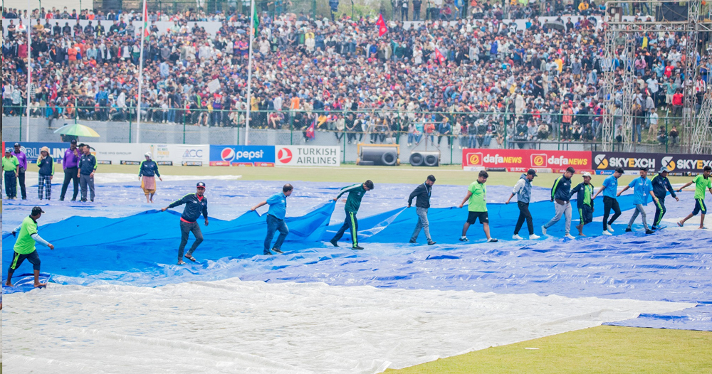 टियु मैदानमा जारी खेलमा वर्षाका कारण रोकिएको थियो । खेल १२ बजेर १५ मिनेटमा सुरु हुनेछ । खेल ४५ ओभरमा छोट्याईएको छ । पहिला ब्याटिङ गरिरहेको नेपालले २३ दशमलब २ ओभरमा ३ विकेट गुमाएर १ सय ४१ रन बनाएको पछि पानी परेको थियो ।
