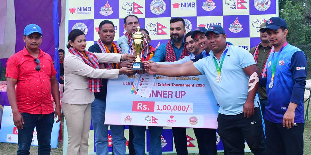 सुदूरपश्चिम । धनगढीमा जारी ‘एनआइबिएम सुदूरपश्चिम मुख्यमन्त्री १६ वर्षमुनिको राष्ट्रिय क्रिकेट प्रतियोगिता’को च्याम्पियन कोशी प्रदेश बनेको छ । स्थानीय फाप्ला क्रिकेट मैदानमा आइतबार भएको फाइनल प्रतिस्पर्धामा बागमती प्रदेशलाई ३५ रनले पराजित गर्दै कोशी प्रतियोगिताको च्याम्पियन बनेको हो ।
