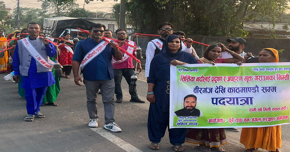 वीरगञ्ज । पर्साको सिर्सिया नदीलाई प्रदूषणमुक्त बनाउन चुरे तथा वनजङ्गल संरक्षण अभियानले वीरगञ्जदेखि काठमाडौंसम्मको पदयात्रा सुरु गरेको छ ।