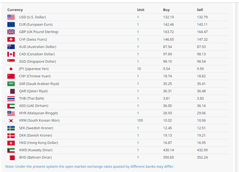 त्यसैगरी, जापानी येन १० को खरिददर ९ रुपैयाँ ५४ पैसा रहेको छ भने बिक्रीदर ९ रुपैयाँ ५९ पैसा रहेको छ । यसैगरी साउदी रियाल एकको खरिददर ३५ रुपैयाँ रहेको २५ पैसा रहेको छ भने, बिक्रीदर ३५ रुपैयाँ ४१ रुपैयाँ रहेको राष्ट्र बैंकले जनाएको छ ।