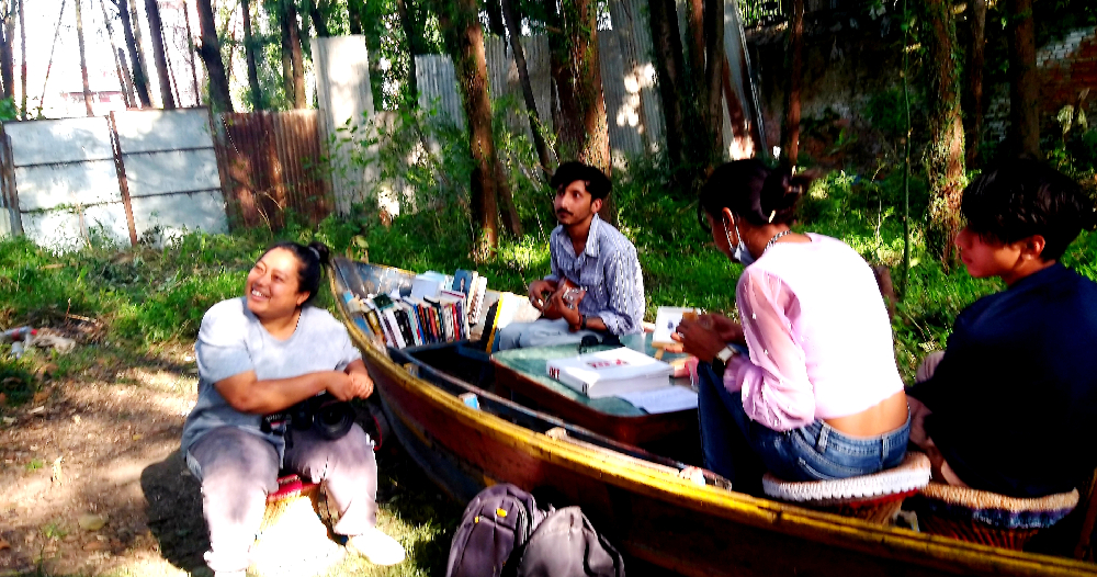 डुङ्गामै रहेको पुस्तकालयको कालजयी पुस्तकमा अक्षरहरुको स्वाद लिन्छन् । सत्यमोहन जोशीको जीवनी, प्रयोगशाला, कलासम्बन्धी पुस्तक, उपन्यास र अनुसन्धानमुलक पुस्तकहरु राखिएका छन् । अनि जमिनमाथिको यात्राको नयाँ अनुभूति सङ्गाल्न पाउँछन् आगन्तुकहरु । त्यो अनुभूतिले जमिनमा रहे पनि बहँदै गरेको पानीको छालमाथिको यात्रामा भावनाहरु छचल्किन पुग्छ । त्यही नदीको यात्रामा डुब्न पुगिन्छ ।