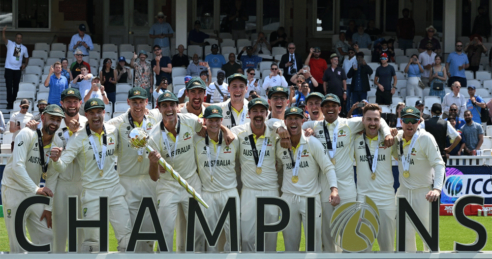 काठमाडौं । अष्ट्रेलियाले विश्व टेस्ट च्याम्पियनसिपको उपाधी जितेको छ । भारतलाई पराजित गर्दै विश्व टेस्ट च्याम्पियनसिपको उपाधी जितेको हाे ।
