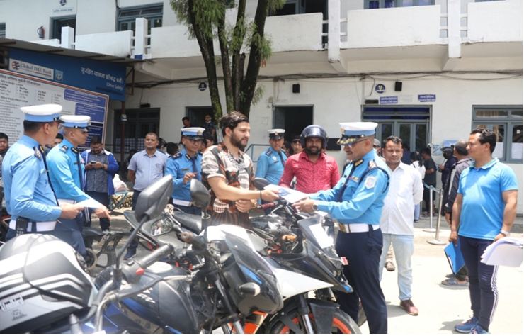 काठमाडौं उपत्यका ट्राफिक प्रहरी कार्यालयमा आज आयोजित एक कार्यक्रमका बीच कार्यालयका प्रवक्ता प्रहरी वरिष्ठ उपरीक्षक राजेन्द्र प्रसाद भट्टले १५ ओटा मोटरसाइकल र ७ ओटा स्कुटर सम्बन्धित धनीलाई हस्तान्तरण गरेका हुन् ।