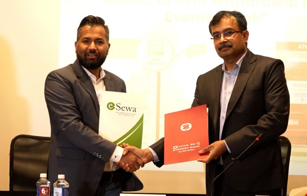 यस्तै कार्यक्रममा एभरेष्ट बैंकका डेपुटी सिइओ विजय कुमार शर्माले भने ‘एभरेष्ट बैंक जहिलेपनि आफ्ना ग्राहकलाई नयाँ सेवा र सुविधा दिन तत्पर छ । यसै क्रममा इसेवा जस्तो नेपालको पहिलो र अग्रणी वालेट कम्पनीसँग सहकार्य गर्न पाउँदा हामी पनि उत्साहित छौँ । इसेवाका प्रयोगकर्ताले एभरेष्ट बैंकका देशभर रहेका कुनैपनि एटिएम मेसिनमार्फत सहजै रकम झिक्न सक्नुहुनेछ । हामी यो आशा गर्दछौँ की यसले नेपालभर रहेका इसेवाका लाखौँ प्रयोगकर्तालाई धेरै सहज बनाउनेछ ।’