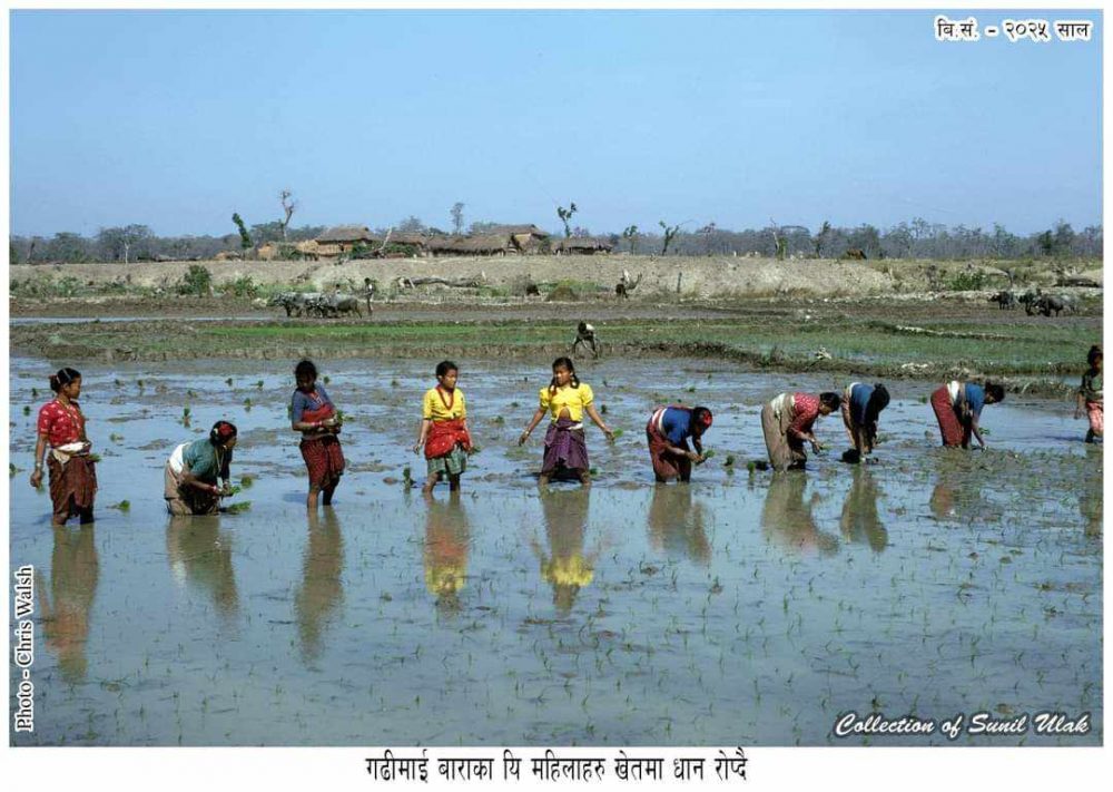 यहाँ मैले आज भन्दा ४०(५० वर्ष अगाडी देशका बिभिन्न ठाउमा असार पन्ध्रको दिन धान रोप्दै गरेका दृश्यहरू राखेको छु । यि दृश्य हेर्दा हामी गर्वित हुन्छौ । किनकी त्यो बेला यसले सार्थकता पाएको थियो । हामी आत्मनिर्भर भएर पनि देशको लागी आर्थिक टेवा पुर्याएको थियो । आज त हामी पूर्णरुपमा पराधिन भयौ ।
