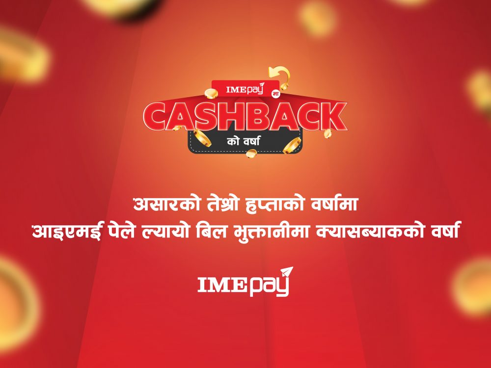 ‘आइएमई पे’ ले असार महिनामा मनसुनलाई लक्षित गर्दै सुरु गरेको ‘आइएमई पेमा क्यासब्याकको वर्षा’ नामक अभियानको यो निरन्तरता हो ।