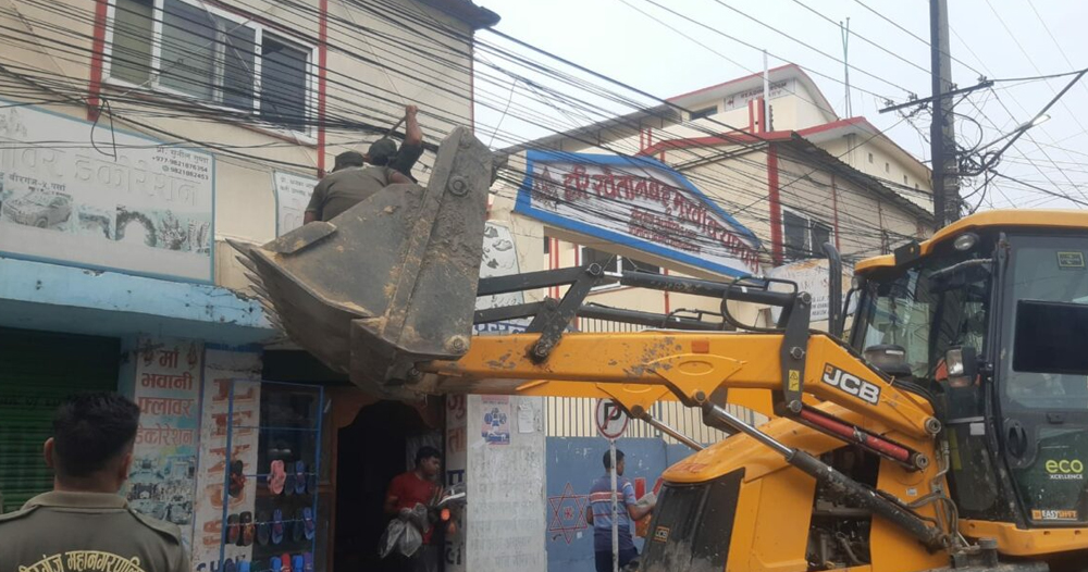 सहरको मुख्य नाला अतिक्रमण गरी बनाइएको क्याम्पस भवनसहितको संरचना डोजर लगाएर सोमबारदेखि भत्काउन सुरु गरेको छ। सोमबार दिउँसो मेयर राजेशमान सिंह आफैं डोजर लिएर क्याम्पस पुग्नुभएको थियो ।