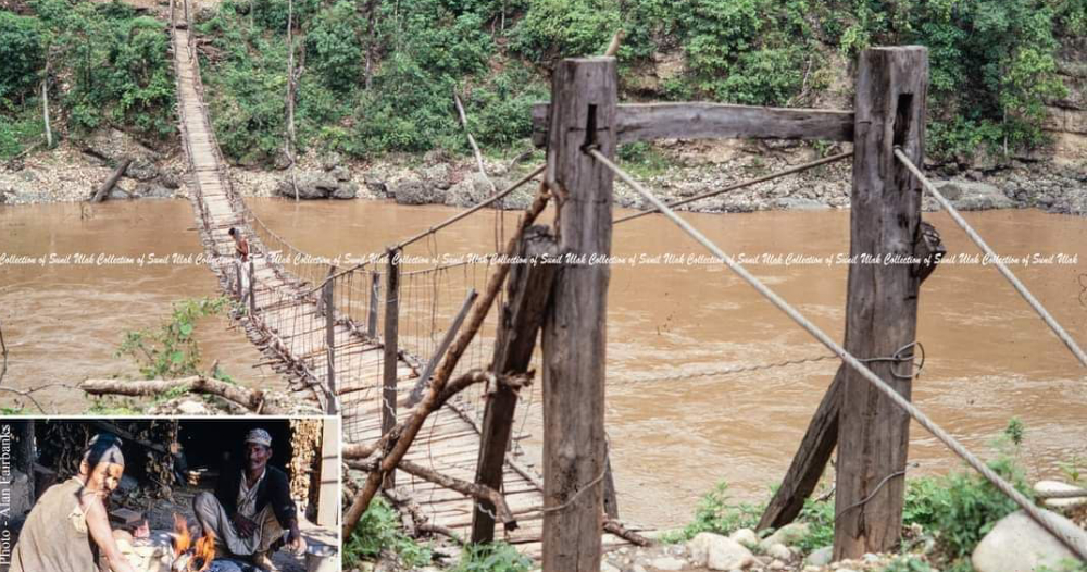 तस्विरमा भेरी नदी माथि उत्तरगंगामा बनेको झोलुङ्गे पुल देख्न सकिन्छ । यहि पुल नै दलवीरले बनाएका हुन् र साथमा इनसेटको तस्विरमा आरनमा काम गर्दै गरेका दलवीरलाई देख्न सकिन्छ । यस तस्विरमा पछाडि ढाका टोपी लगाएका दलवीर सिंह हुन् । मेरो संग्रहमा दलवीरका केही अन्य पारिवारिक तथा पुल बनाइरहेका तस्विरहरु पनि छन् ।