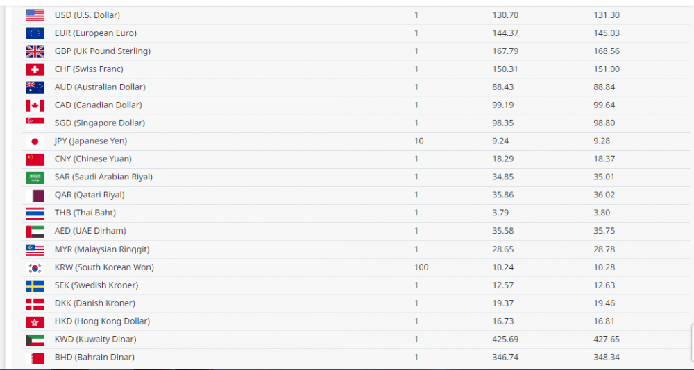 त्यस्तै, युरो एकको खरिददर १४४ रुपैयाँ ३७ पैसा र बिक्रीदर १४५ रुपैयाँ ०३ पैसा रहेको बैंकले जनाएको छ । त्यस्तै, बेलायती पाउन्ड एकको खरिददर १६७ रुपैयाँ ७९ पैसा र बिक्रीदर १६८ रुपैयाँ ५६ पैसा रहेको छ भने, कतारी रियाल एकको खरिददर ३५ रुपैयाँ ८६ पैसा र बिक्रीदर ३६ रुपैयाँ ०२ पैसा रहेको राष्ट्र बैंकले जनाएको छ ।