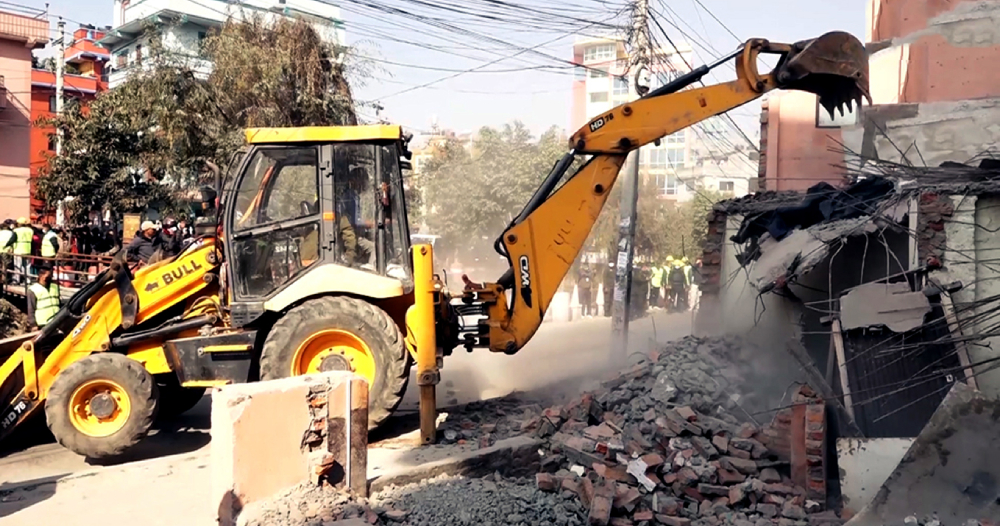 काठमाडौं । काठमाडौंको टोखा नगरपालिकाले नगरभित्र सार्वजनिक जग्गा मिचेर बनाएका अवैध संरचना हटाएको छ । नगरभित्रको सार्वजनिक जग्गा अवैधरुपमा कब्जा गरेर बनाएका संरचना डोजर लगाएर हटाउन थालिएको हो ।