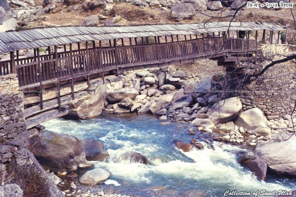 पूर्वी नेपालको सोलुखुम्बु जिल्लामा लुक्लाबाट नाम्चे जाने बाटोमा दुधकोशी नदी माथी रहेको छाना भएको पुल धेरै अगाडि बनेको देखिन्छ भने अर्को पुरानो इलामको छ । तेश्रो फोटो पश्चिम नेपालको खवाङ बगरबाट पूर्वी रुकुम जाने बेलामा खवाङ खोलामाथि बनेको पुल छ, जुन खासै पुरानो जस्तो देखिदैन ।