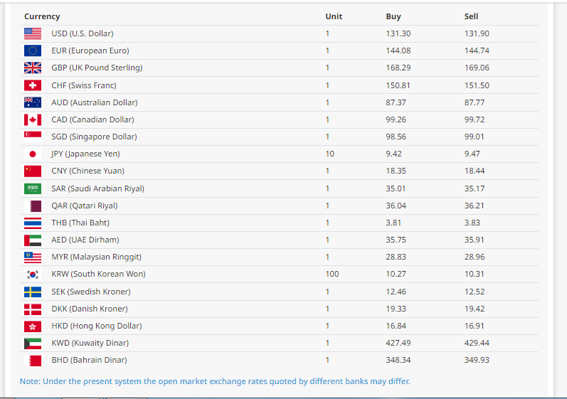 त्यस्तै, युरो एकको खरिददर १४४ रुपैयाँ ०८ पैसा र बिक्रीदर १४४ रुपैयाँ ७४ पैसा रहेको बैंकले जनाएको छ । त्यस्तै, बेलायती पाउन्ड एकको खरिददर १६८ रुपैयाँ २९ पैसा र बिक्रीदर १६९ रुपैयाँ ०६ पैसा रहेको छ भने, कतारी रियाल एकको खरिददर ३६ रुपैयाँ ०४ पैसा र बिक्रीदर ३६ रुपैयाँ २१ पैसा रहेको राष्ट्र बैंकले जनाएको छ ।