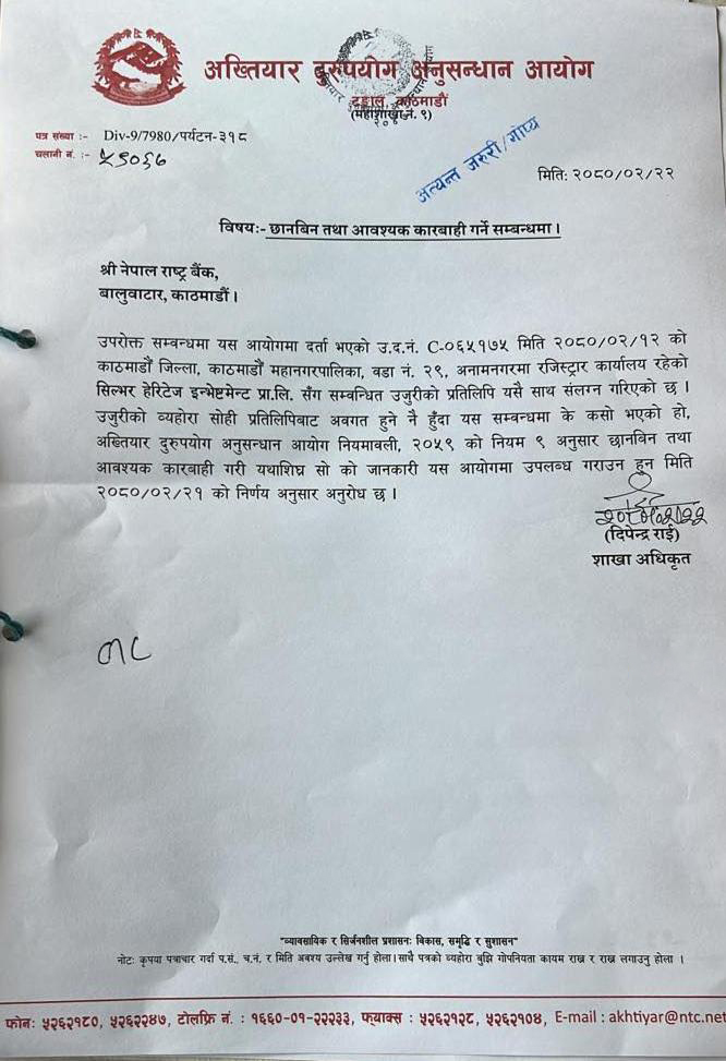 पाँचतारे टाइगर प्यालेस रिसोर्ट हङकङमा बिक्री भएको विषयमा सरकार र अख्तियारले छानबिन थालेको छ। देश बाहिर खरिद गरेको विषय बाहिर आएपछि सरकार र अख्तियारले यसको छानबिन थालेका हो। – INS