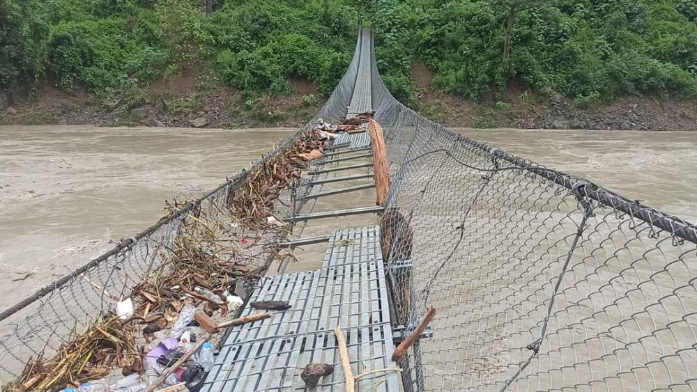 लगातार वर्षापछि त्रिशूली नदीमा आएको बाढीले धादिङको बेनीघाट रोराङ गाउँपालिका–७ चरौँदी र गोरखाको गण्डकी गाउँपालिका–७ जोड्ने त्रिशूली नदीमाथिको झोलुङ्गे पुल क्षति भएको छ । यस्तै धादिङको बेनीघाट रोराङ–१० र गोरखाको गण्डकी–६ जोड्ने हिक्लुङघाटको झोलुङ्गे पुलमा पनि क्षति पुर्याएको छ ।