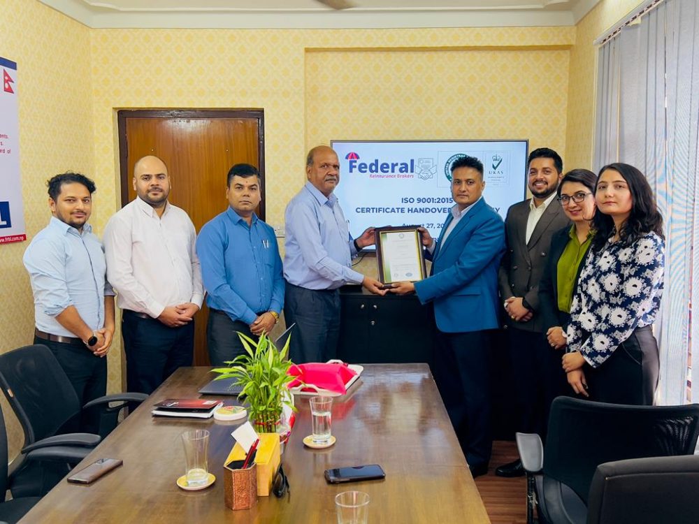 फेडेरल बन्यो आईएसओ ९००१ : २०१५ प्राप्त गर्ने नेपालकै पहिलो पुनर्बीमा दलाल कम्पनी