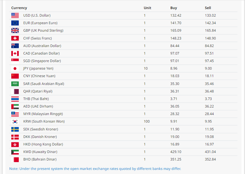 काठमाडौं । नेपाल राष्ट्र बैंकले आज (बुधबार)का लागि विदेशी मुद्राको विनिमयदर तोकेको छ । नेपाल राष्ट्र बैंककाअनुसार विदेशी मुद्राको विनिमयदर अमेरिकी एक डलरको खरिददर १३२ रुपैयाँ ४२ पैसा र बिक्रीदर १३३ रुपैयाँ ०२ पैसा रहेको छ ।