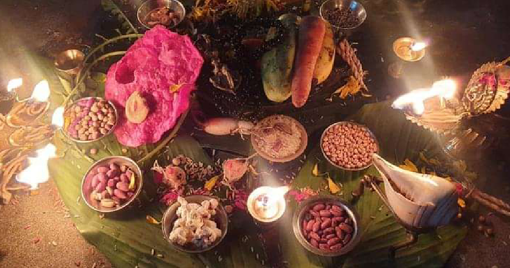 यस दिन राति नेवार समुदायमा कौशी वा घरको आँगनमा चथाः गणेश र चन्द्रमाको विधिवत पूजा गर्ने गरिन्छ । पूजामा कमलको फूलको पातमा चथा गणेशको तस्बिर राखेर, नैबद्य, पंचपकवान, अनार, केरा, अम्बा, नासपाती, काँक्रो, सुन्तला, काँचो भिजाएको काँचो केराउ, कमलको फूल, नयाँ अदुवाको बोट तथा भुटेको मकै, भटमास, गहुँ, बदाम, मुगी, केराउ, चना, बकुल्ला समेत आठ प्रकारका गेडागुडी चढाइन्छ । साथै पूजामा ध्यूमा भुटेको आरुको वियाँ, दुवो, कालो तिलको लड्डु, मुला खाइसी९भोगते जस्तो एक प्रकारको फल० चढाउँछन् ।