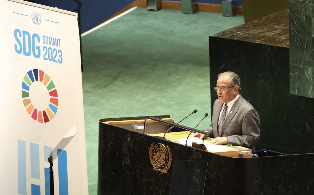 संयुक्त राष्ट्रसङ्घको ७८औँ महासभाअन्तर्गतको ‘विश्व सहश्राब्दी समिट’लाई अतिकम विकसित देशहरूको तर्फबाट सोमबार सम्बोधन गर्दै प्रधानमन्त्री दाहालले भने, ‘आजको मितिमा हामीहरू विश्व सहश्राब्दी लक्ष्य २०३० को उद्देश्य हासिल गर्न आधा बाटोमा रहेका छौँ, यो हासिल गर्नका लागि हामीहरू गम्भीरतापूर्वक सही मार्गमा रहेका छौँ ।’