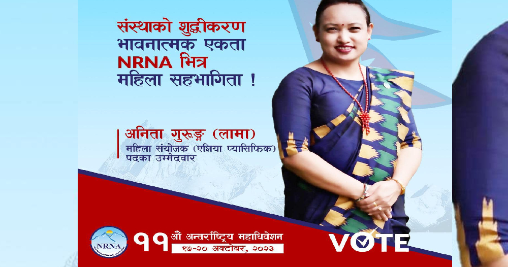 एनआरएनए एसिया प्यासिफिक महिला संयोजकमा अनिता गुरुङले गरिन् उम्मेदवारी घोषणा