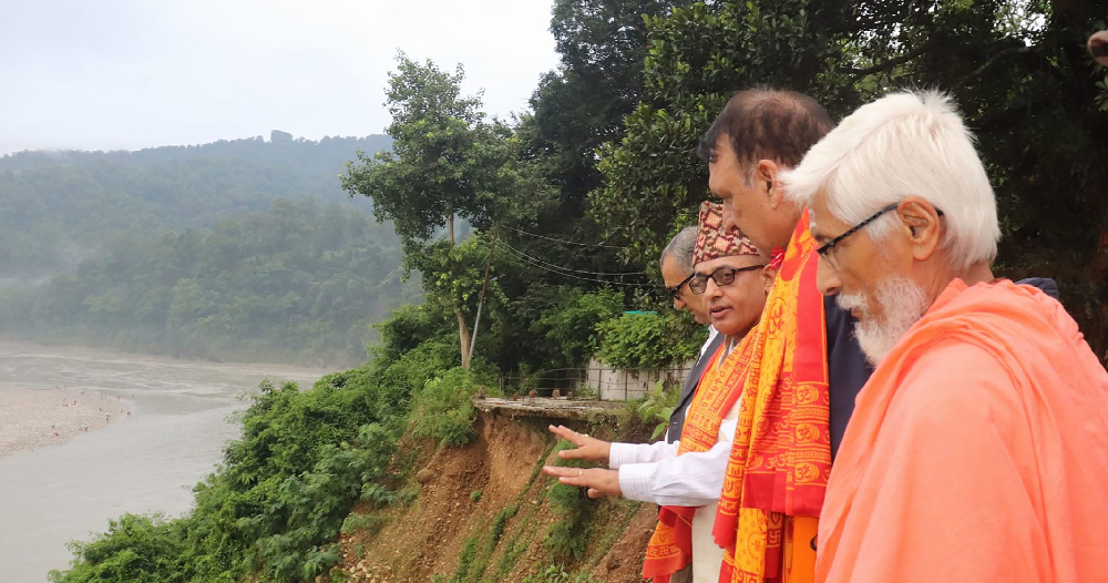 अर्थमन्त्री डा. महतले गलेश्वर आश्रमको पहिरो निरीक्षण