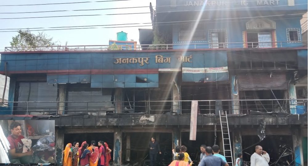 जनकपुरधाम । धनुषाको जनकपुरधाम उपमहानगरपालिका– ९ रामानन्द चोकमा रहेको रामबाबु रायको ‘जनकपुर विग मार्ट’मा गएराति भषिण आगलागी भयो ।