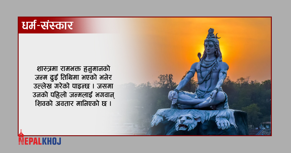 शास्त्रमा रामभक्त हनुमानको जन्म दुई तिथिमा भएको भनेर उल्लेख गरेको पाइन्छ । जसमा उनको पहिलो जन्मलाई भगवान् शिवको अवतार मानिएको छ । किनकी हनुमानकी आमा अन्जनीले भगवान् शिवको घोर तपस्या गरेर शिवलाई पुत्रको रुपमा प्राप्त गर्ने वर मागेकी थिइन् । त्यसपछि भगवान् शिवले पवन देवको रुपमा आफ्नो रौद्र शक्तिको अंश यज्ञ कुण्डमा अर्पित गरेका थिए र त्यतिबेलै उक्त शक्ति अन्जनीको गर्भमा प्रविष्ट भएको थियो ।