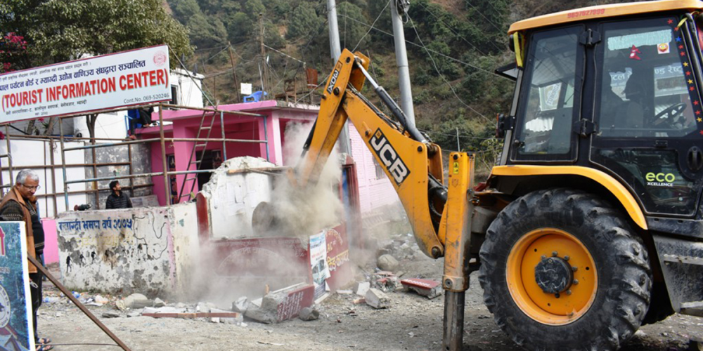 नगरपालिकाले डोजर लगाएरै अतिक्रमित संरचना भत्काउन थालेको छ । अतिक्रमित जग्गामा बनेका संरचना भत्काउन जनप्रतिनिधिले समन्वय गर्ने गरी डोजर र नगर प्रहरीलाई परिचालन गरिएको उनले बताए ।