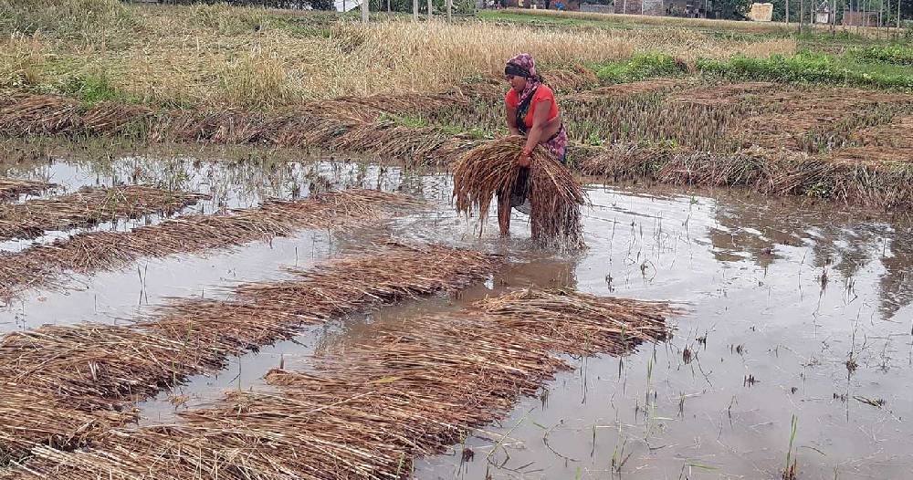 किसान पार्वती चौधरीले पानी आउन थालेपछि बोक्दाबोक्दै काटेको धान भिजेको बताए । ‘मौसम परिवर्तन हुन थालेपछि हतार–हतारमा काटेको धान बोक्यौँ तर सकिएन’, उनले भने, ‘आधाआधी बोक्याैँ, बाँकी धान खेतमै भिज्यो ।’