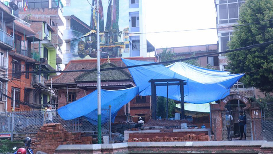भूकम्पले जीर्ण बनेका सम्पदा अझै त्रिपालमुनि