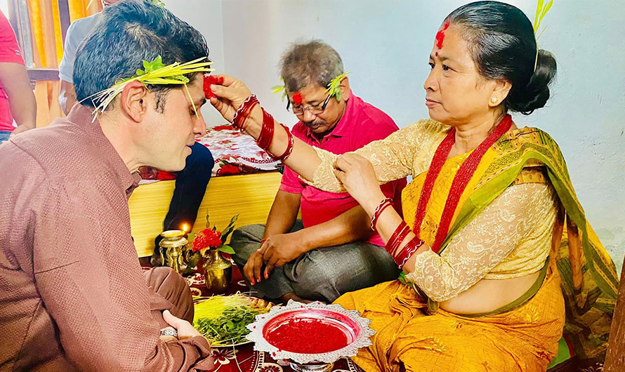 बाँकेका मुस्लिम अगुवा तथा नेपाल उद्योग वाणिज्य महासङ्घका केन्द्रीय सदस्य अब्दुल वाहिद मन्सुरीले आफ्ना मान्यजनबाट दसैँको टीका र जमरा लगाएका हुन् ।