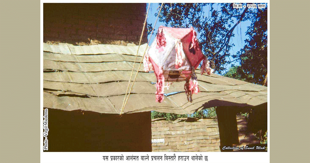 जसलाई आकाशदीप भन्ने गरिन्छ । आकाशदीपलाई नेवारहरु आलंमत भन्ने गर्दछन् । आलंको अर्थ आकाश र मतको अर्थ दीप (बत्ती) हुने हुँदा आकाशदीप भन्ने गरिन्छ । तर बोलीचालीमा आलुमत पनि भन्ने गरिन्छ । आखिर आकाशदीप किन बालिन्छ भन्नेमा बिभिन्न मत छ । भारतीयहरु पनि आकाशदीप बाल्ने गर्दछन् । जसले गर्दा यो प्रचलन केवल नेवाःहरुको मात्र भन्न सकिदैन । साथै यो प्रचलन भारतबाट नै नेपालमा पनि भित्रिएको सहजै अनुमान गर्ने सकिन्छ । नेपालमा पनि अन्य जातिको तुलनामा अत्यधिक नेवाःहरुले बालेको भने पाँउछौ । यसको अर्थ यसको प्रचलन केवल काठमाडौ उपत्यकामा ब्यापक हुन पुगेको भन्न सक्दछौ ।