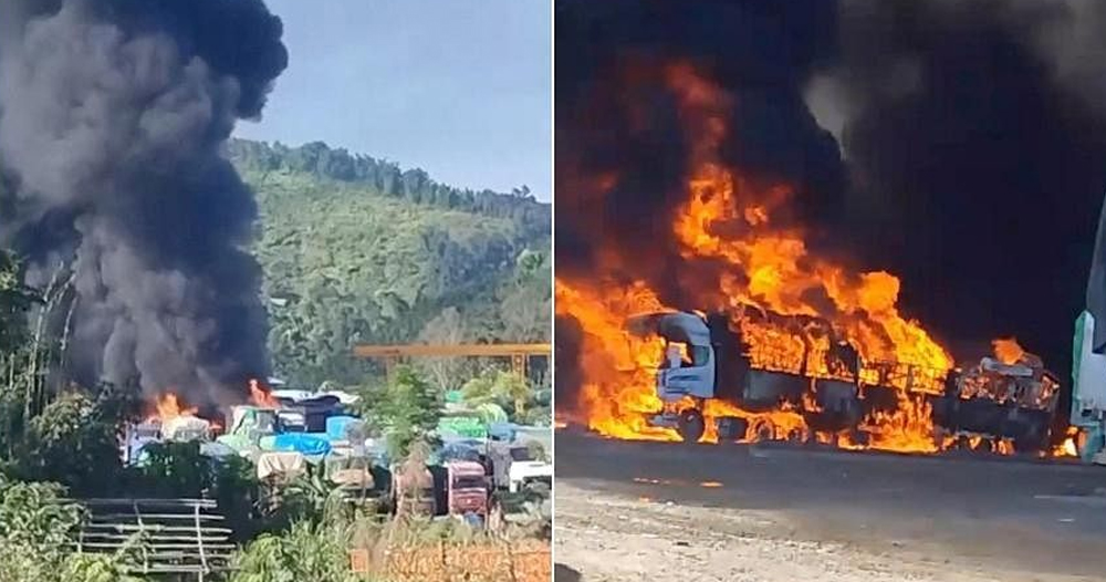 साताको सुरुमा जुन्ताका प्रवक्ता ज मिन तुनले सरकारी मिडियालाई सीमापार नजिक रहेका करिब एक सय २० ट्रकमा सशस्त्र समूहहरूले आगो लगाएको आरोप लगाउनुभएको थियो ।