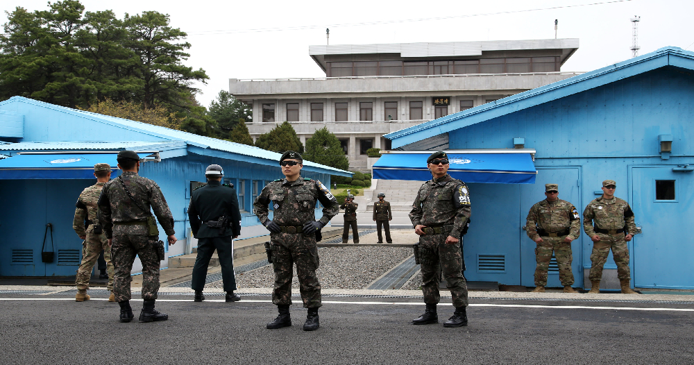 दक्षिण कोरियाको सेनाले जारी गरेको एउटा तस्बिरमा उत्तर कोरियाका चार सैनिकले दुवै मुलुकलाई विभाजन गर्ने असैन्यकृत क्षेत्रमा एउटा काठको सुरक्षा चौकी पुनर्निर्माण गरिरहेको देखाइएको छ ।